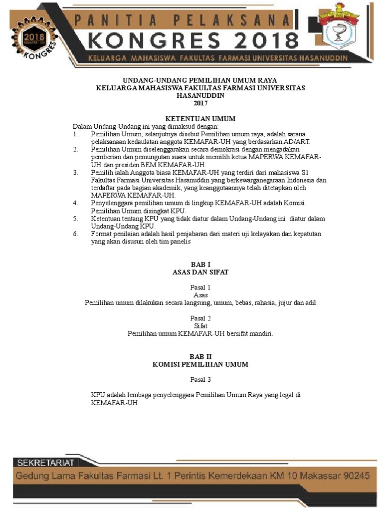 1. Pemilih pada pemilihan umum ialah anggota biasa KEMAFAR-UH.